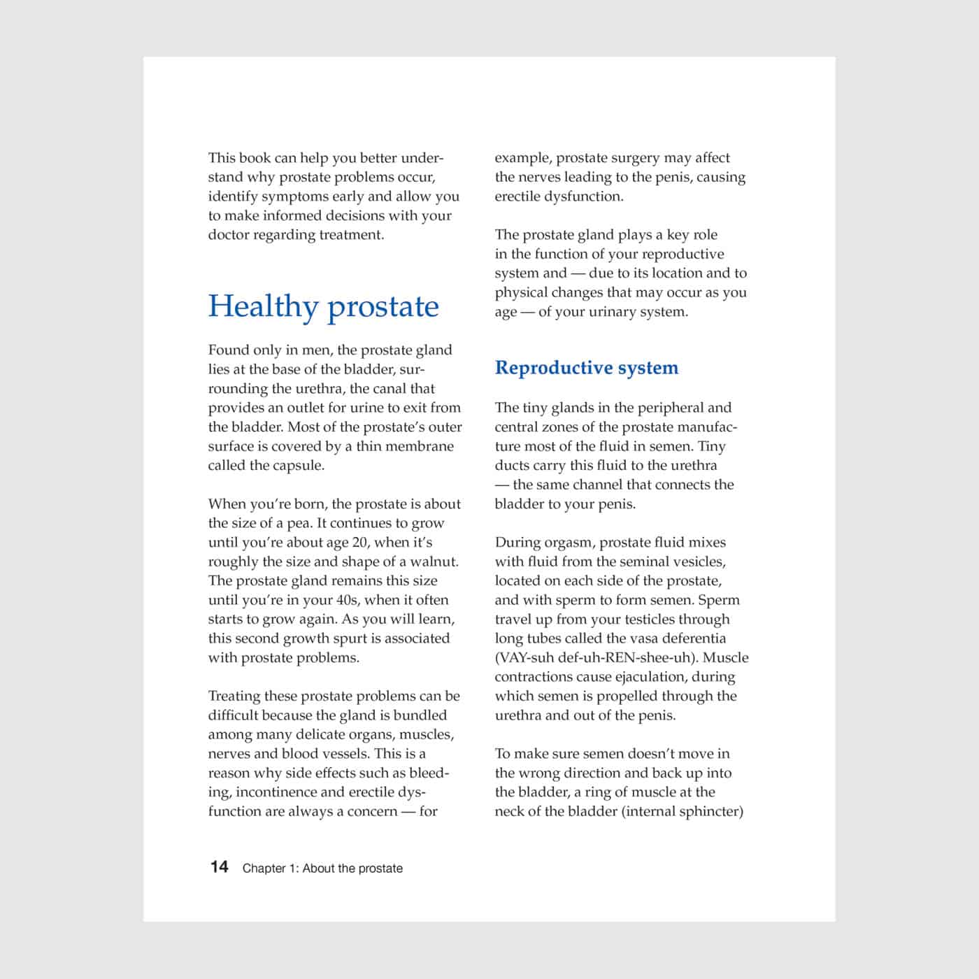 The experts at Mayo Clinic can help the reader evaluate treatment options, cope with cancer and discover ways to improve quality of life. The topics covered include: the debate over PSA testing; latest imaging technology for the prostate; full range of treatment options for prostatitis, BPH and prostate cancer; managing treatment side effects, including incontinence and impotence.